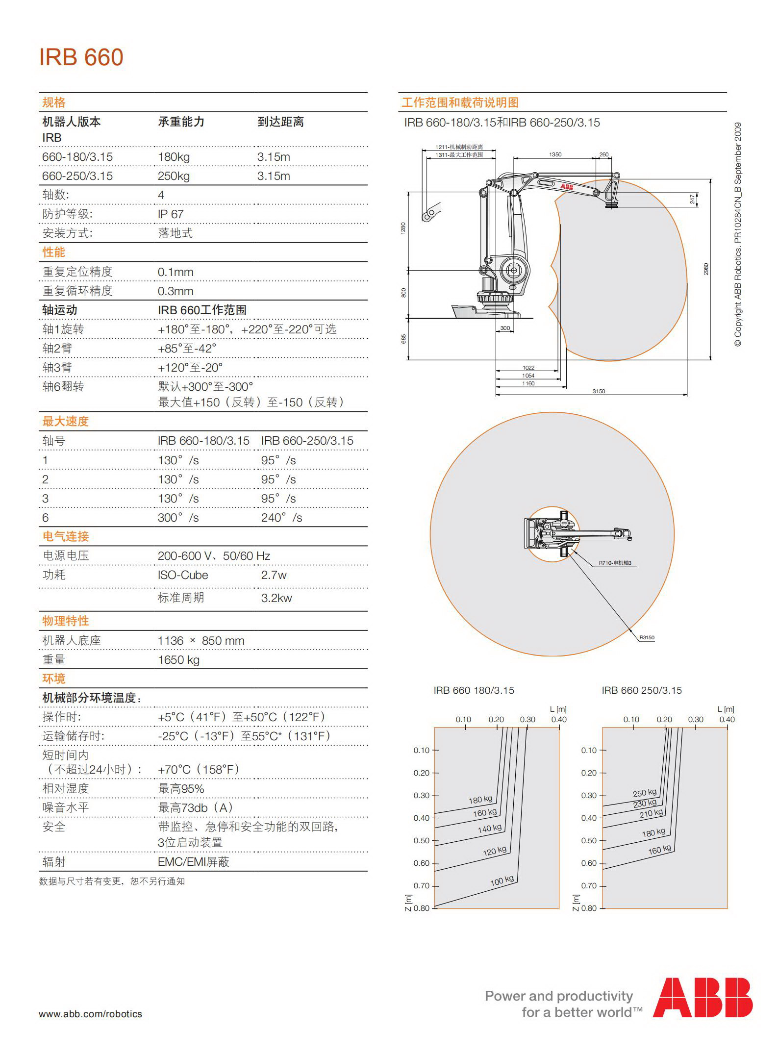 出料線。事實(shí)上,IRB 660的通用性、到達(dá)距離和承重能構(gòu)、3.15米到達(dá)距離加上250kg的有效載荷,使IRB660成力幾乎可滿足任何堆垛應(yīng)的需求。為袋、盒、板條箱和瓶子等包裝材料的理想堆垛工具。IRB 660的使用非常便捷。